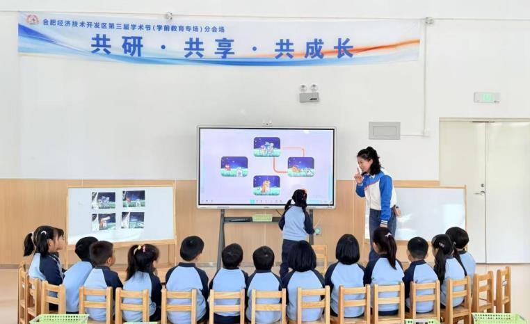 分会场活动在合肥海恒教育方兴幼儿园同步进行,聚焦于建构课程、绘本课程及“徽文化”课程等方向。其中,合肥市语言领域优质课一等奖作品《猫和老鼠》进行了现场展示,该活动打破传统看图讲述模式,通过多元排序激发幼儿故事创编与表达能力,展现了教学方式的创新。